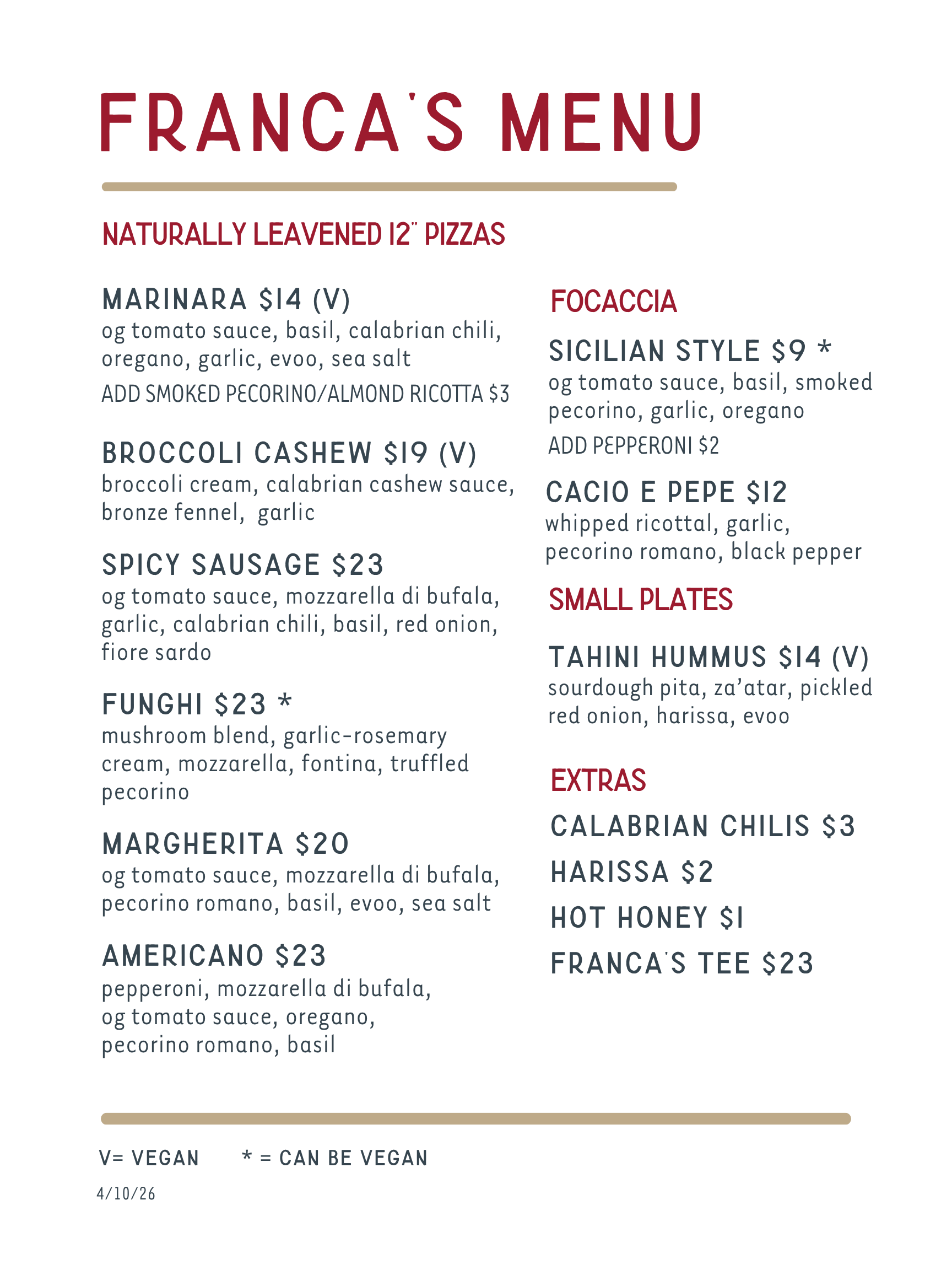 Catering & Pop-up Inquiries: events@francas-pizza.com